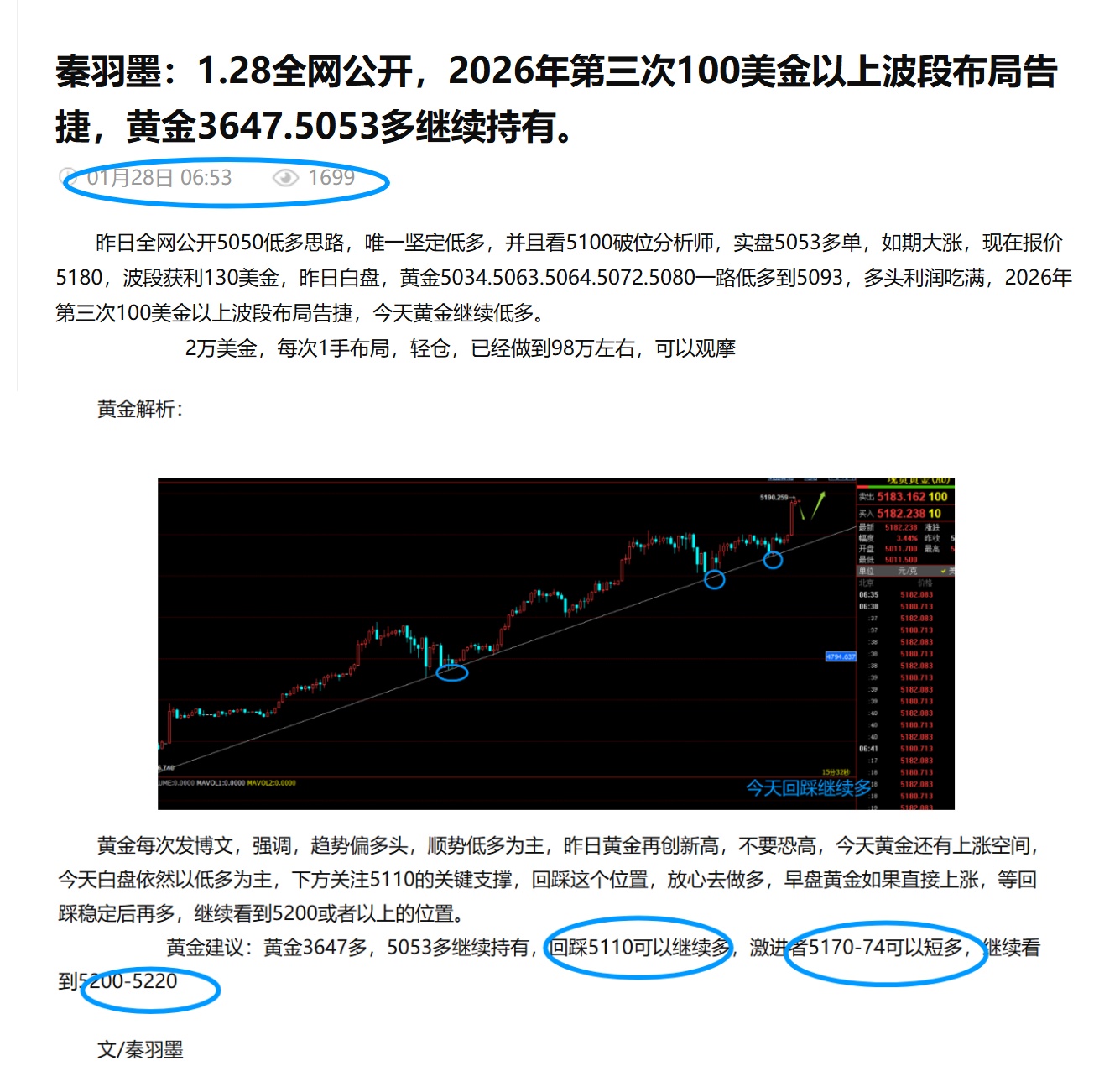 秦羽墨:1.28黄金5053波段多,成功拿下170美金利润,晚间回踩继续多