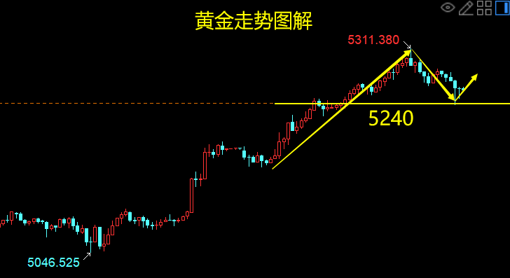 云杰:黄金4H图转调整,晚间5240上多等待利率决议