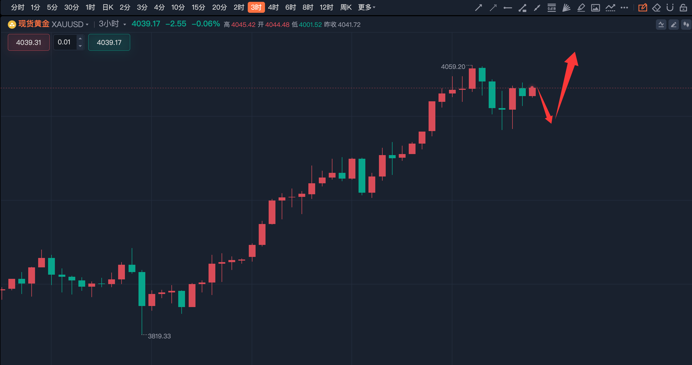 万锦晟10.9黄金四千之上莫追多,高位压制下跌看调整!