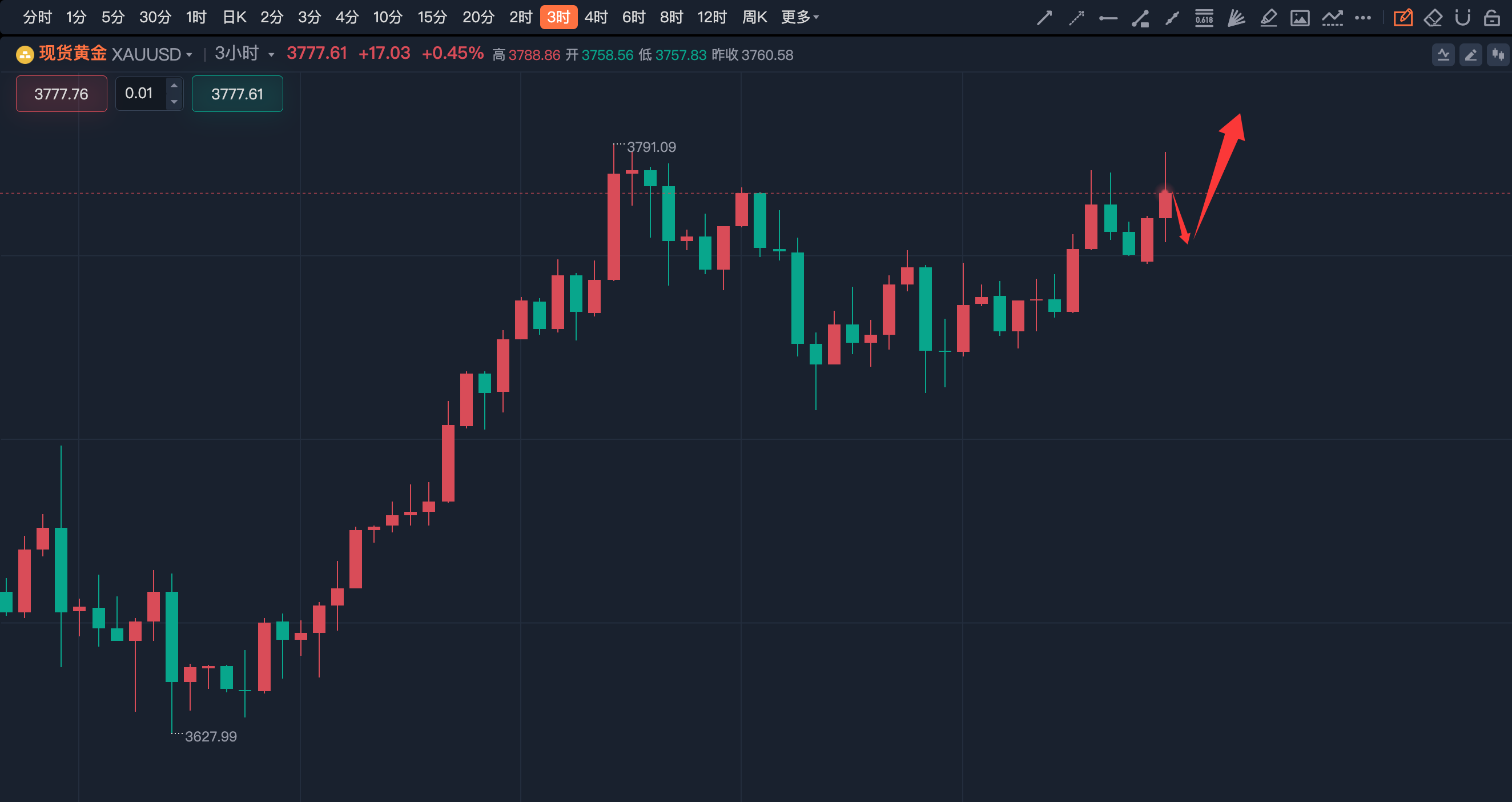 南一交易:9/29黄金众人恐惧我先胜!3786进场就胜!3775短线开始减仓了!开门红!