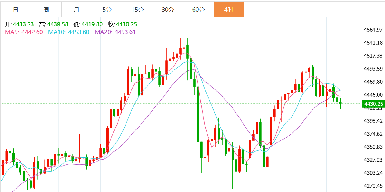 1.8 黄金遇阻回调,关注4400关键支撑与低吸机会