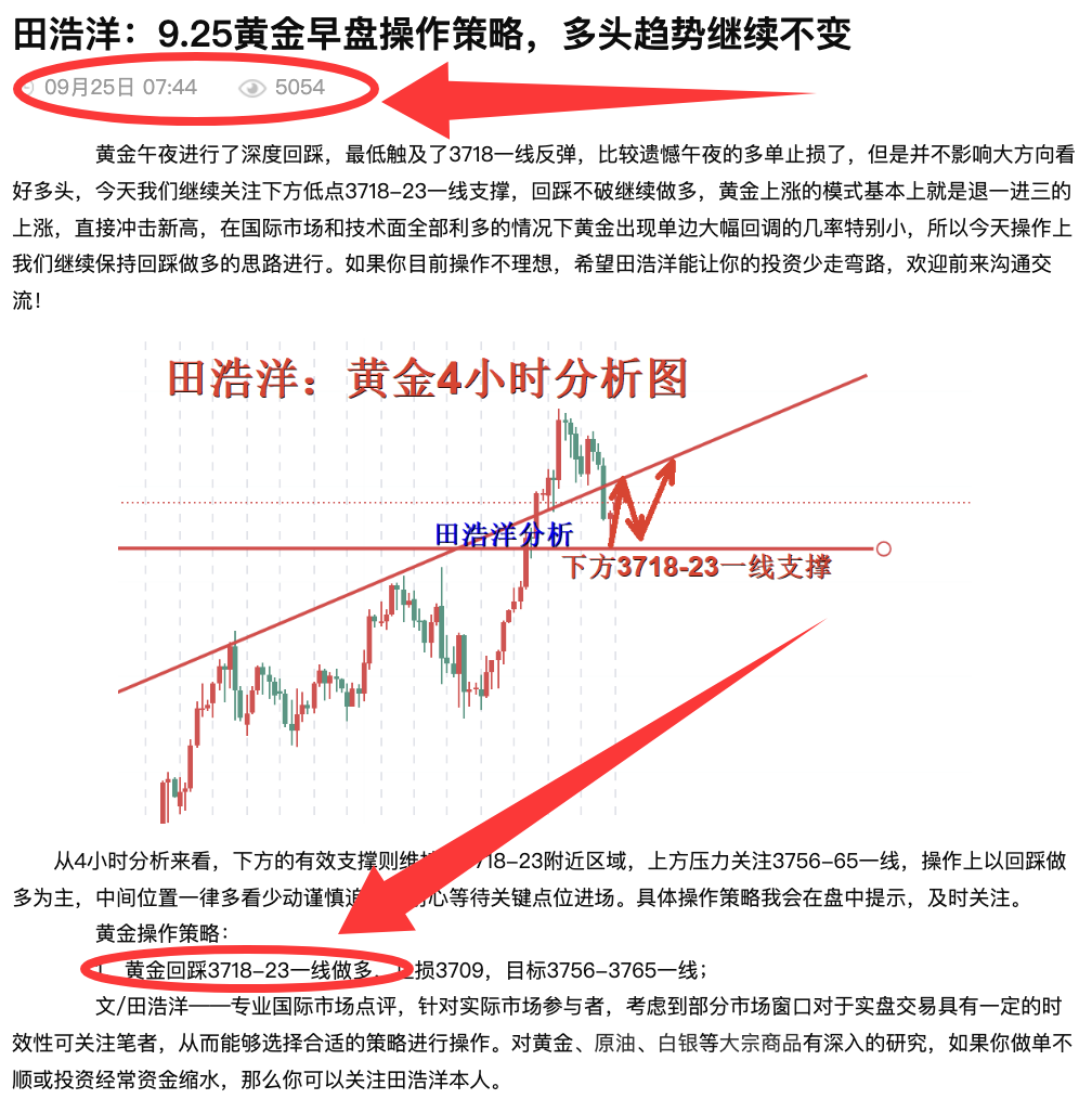 田浩洋:9.26黄金白盘保持回踩保持做多思路进行