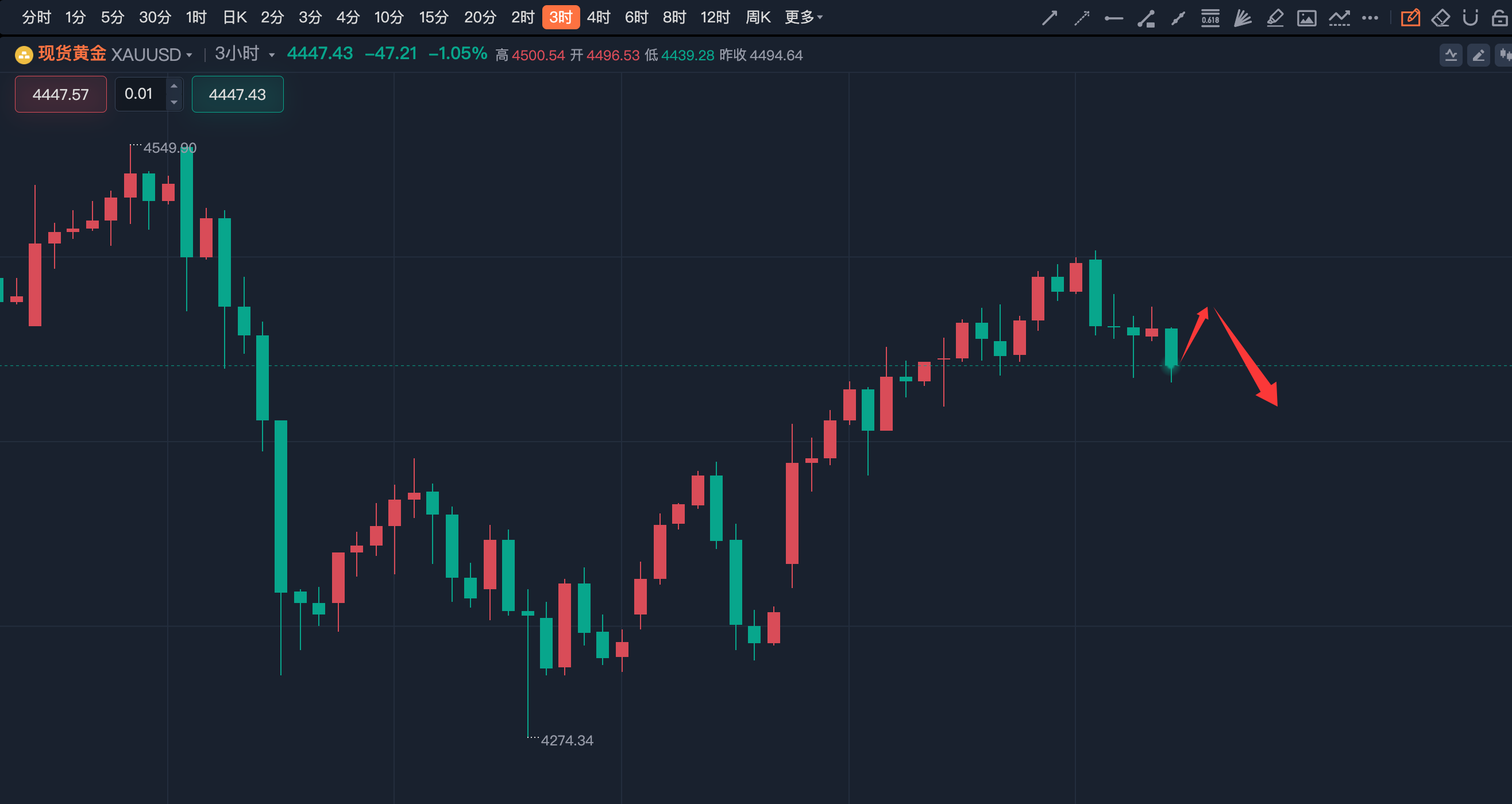云杰:黄金4464短空验证,明天回踩日图支撑做多