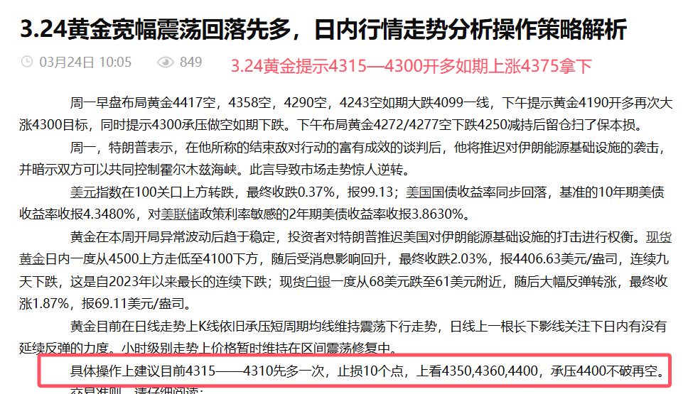 李馨玥: 3.24黄金震荡区间精准预判,实盘3连胜斩获73点!