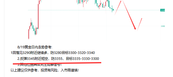 南一交易:8/19黄金3345公开空3335逢低减仓了!晚间谨防再探底!