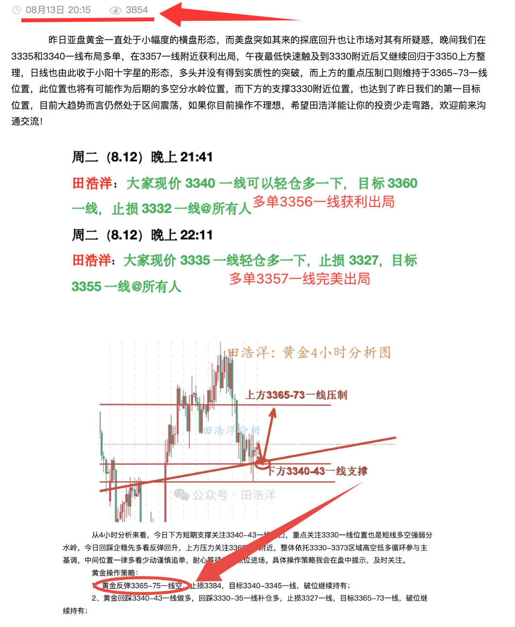 高晓峰:8.13 午夜黄金震荡延续,建议区间高空低多