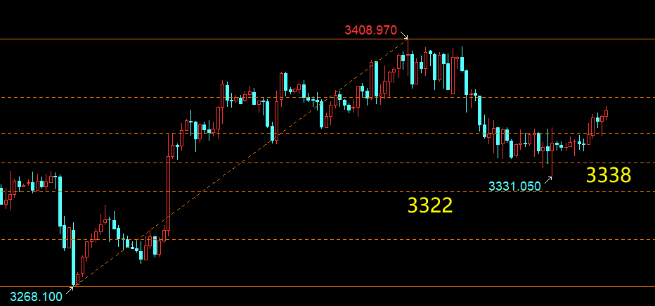 云杰:黄金日内3350-3356-3360连多3370持有