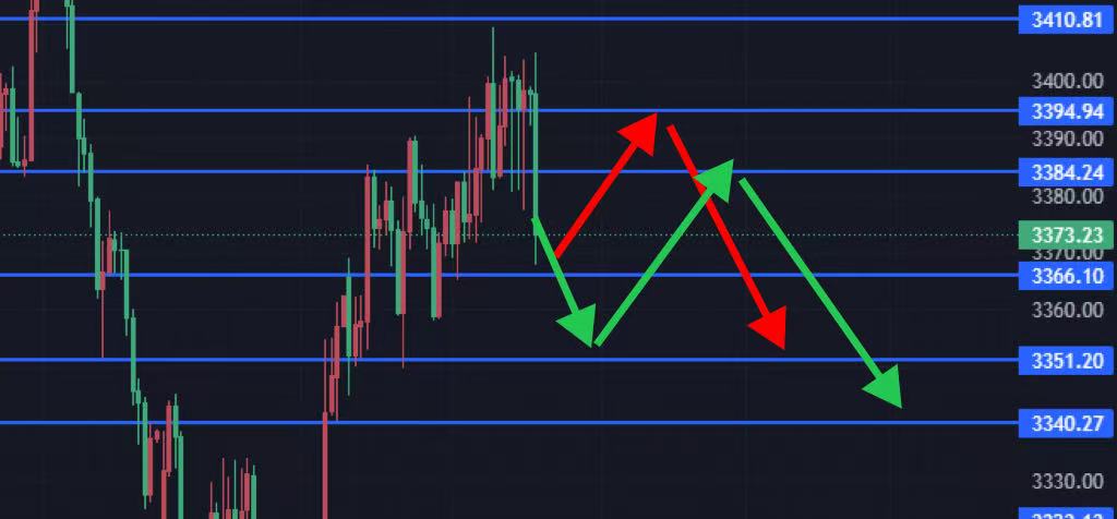 南一交易:8/11黄金技术面调整开启!3400持空看3350!