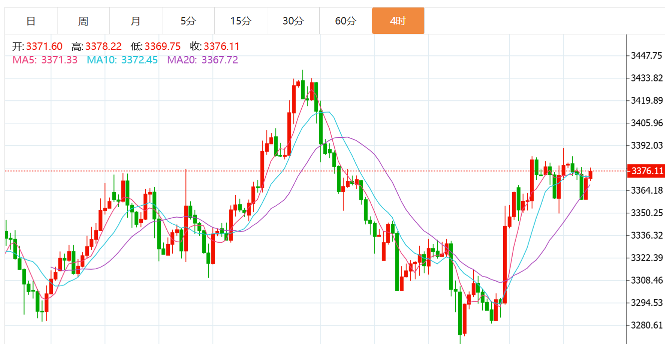 晚间重点关注3375短线多空风水岭一线,黄金行情走势