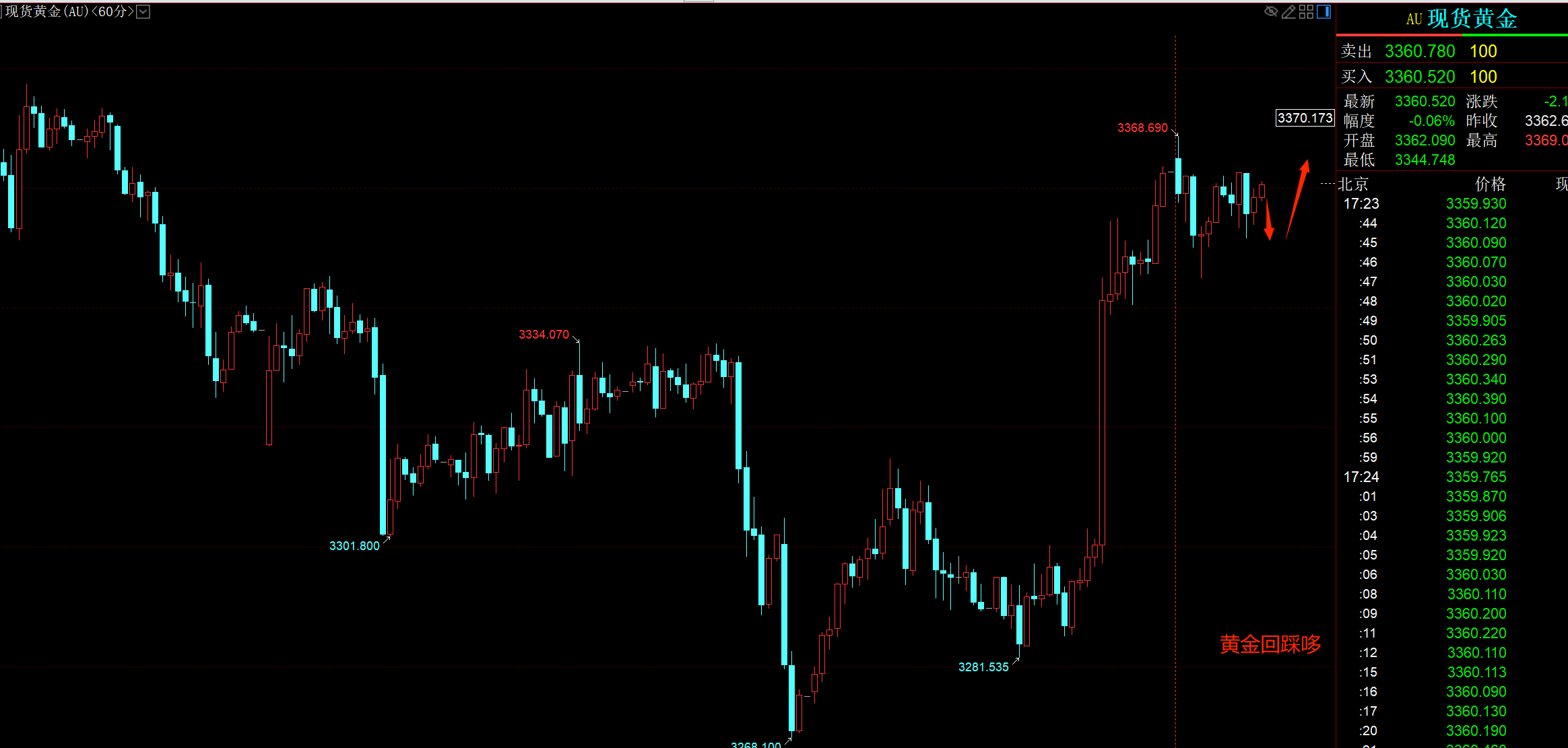秦羽墨:8.4周一黄金3361-62空开门红,晚间黄金回踩哆