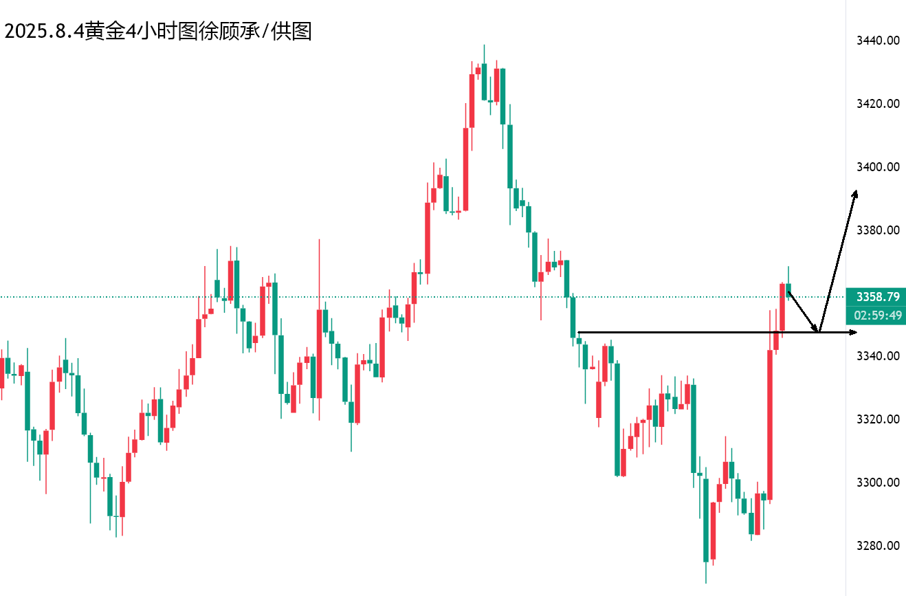 南一交易:8/4黄金3338上继续看涨!随便多!