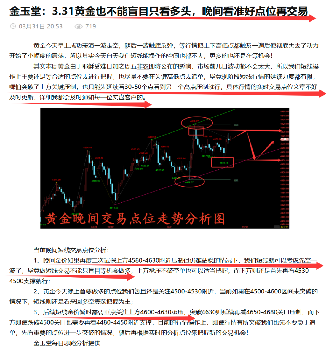 金玉堂:4.1黄金愚人节能否给多头惊喜?后续短线交易点位分析