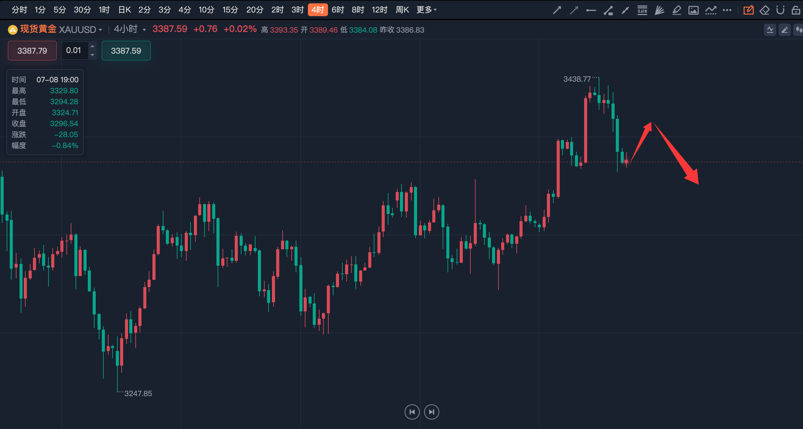 江沐洋:7.24国际黄金吞没看跌形态,今日黄金走势及操作建议