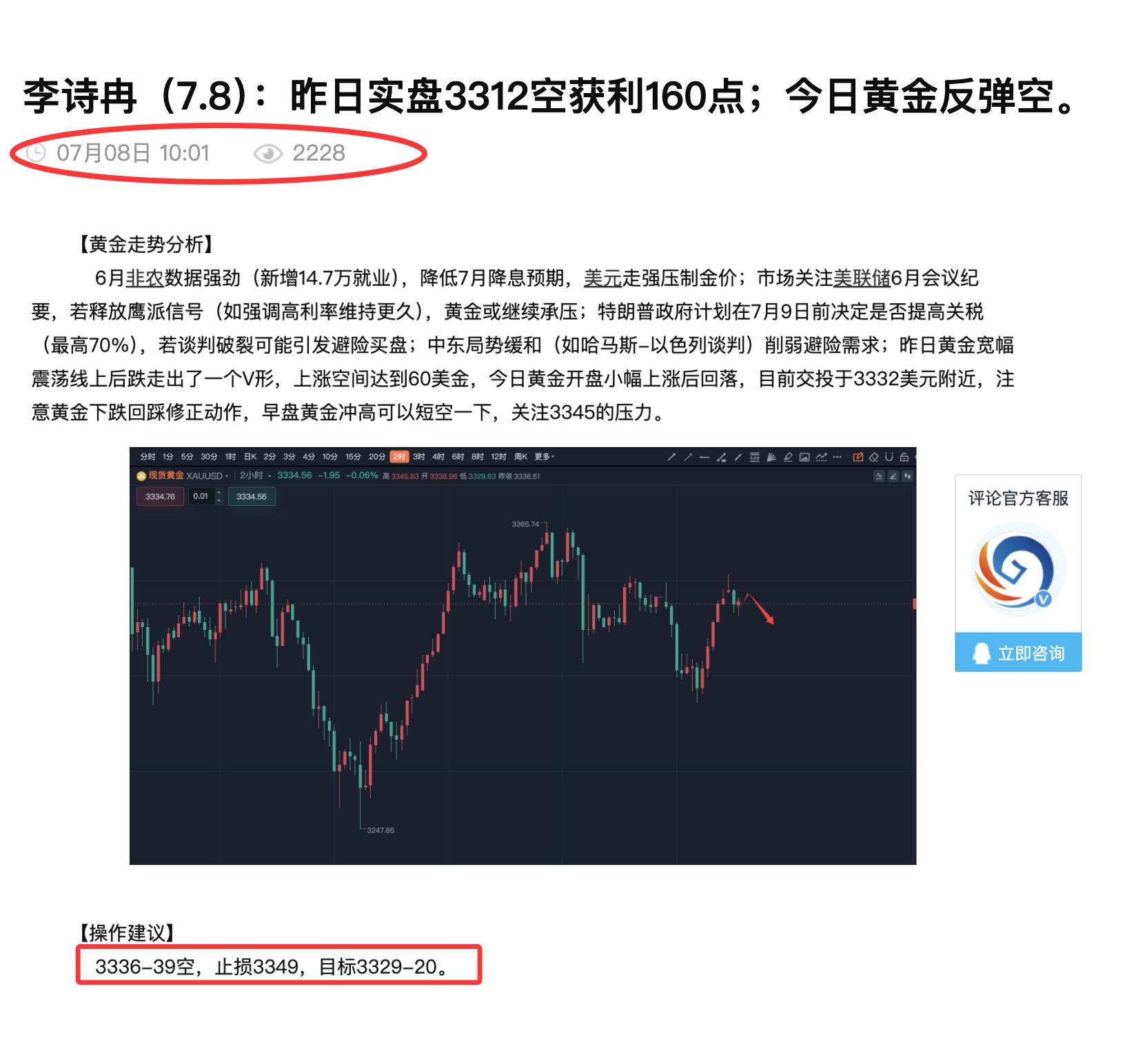 李诗冉(7.13):本周实盘9单获利690点;下周黄金走势分析。