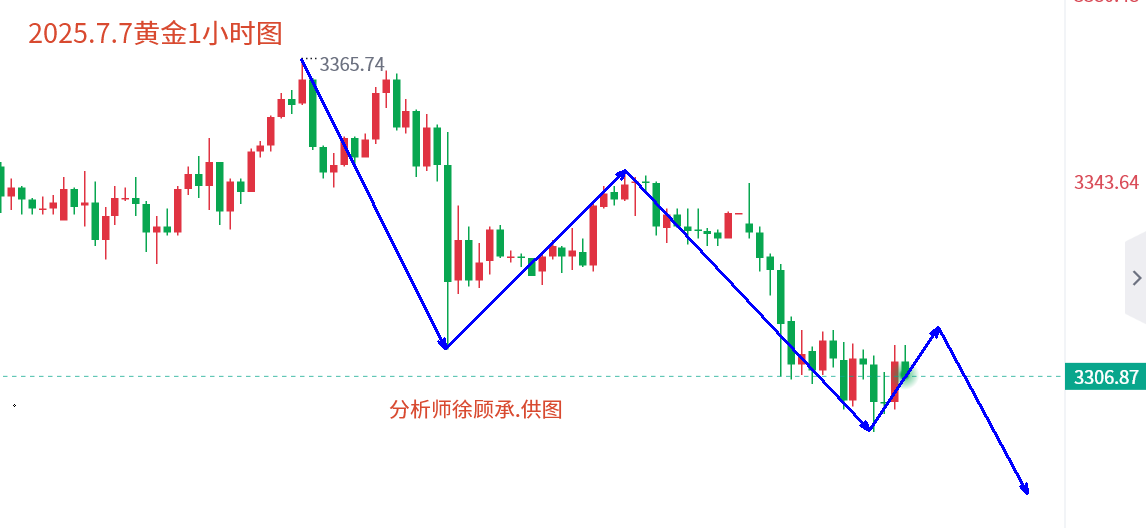 万锦晟7.7黄金偏弱下跌莫追空,3300下方或有反弹!