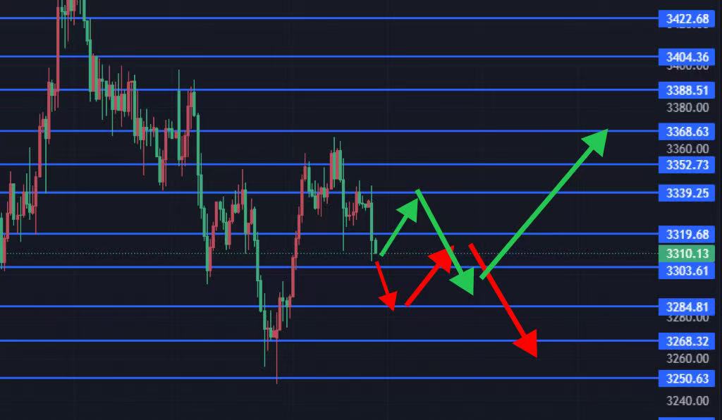 南一;7/7黄金33323直接持多了!早盘回撤给机会!看一波反弹!