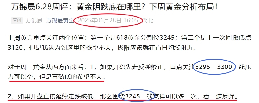 秦羽墨:7.3全网公开,唯一从3255一路低多到3356的分析师,黄金反弹空