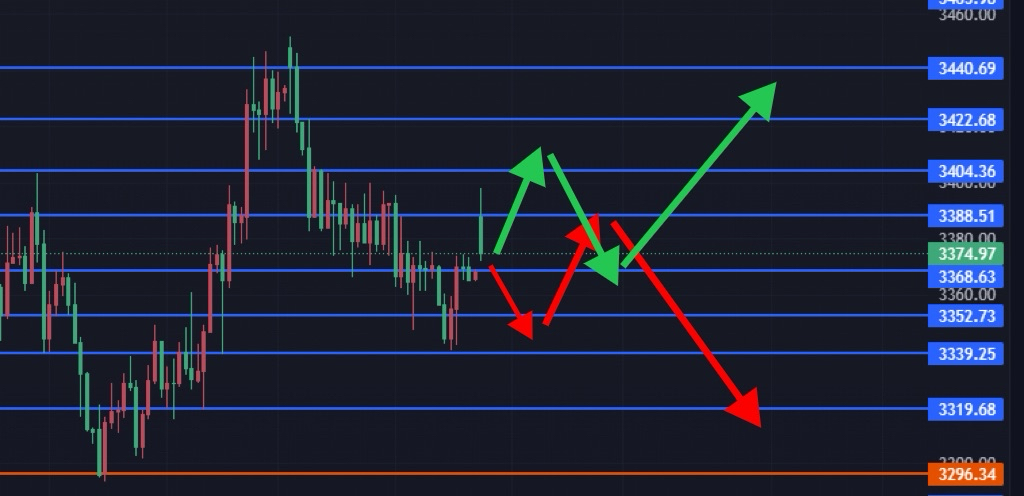 田浩洋:6.23黄金早盘高开低走,现价3362附近直接多