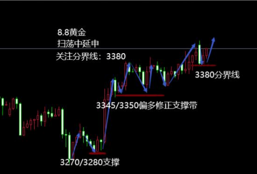 万锦晟8.8黄金震荡上升不强势,今日收官谨防探底回升!
