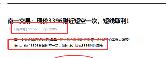 李诗冉(8.8):今日公开3400空单策略正确,实盘1多1空获利200点;晚间黄金反弹空。