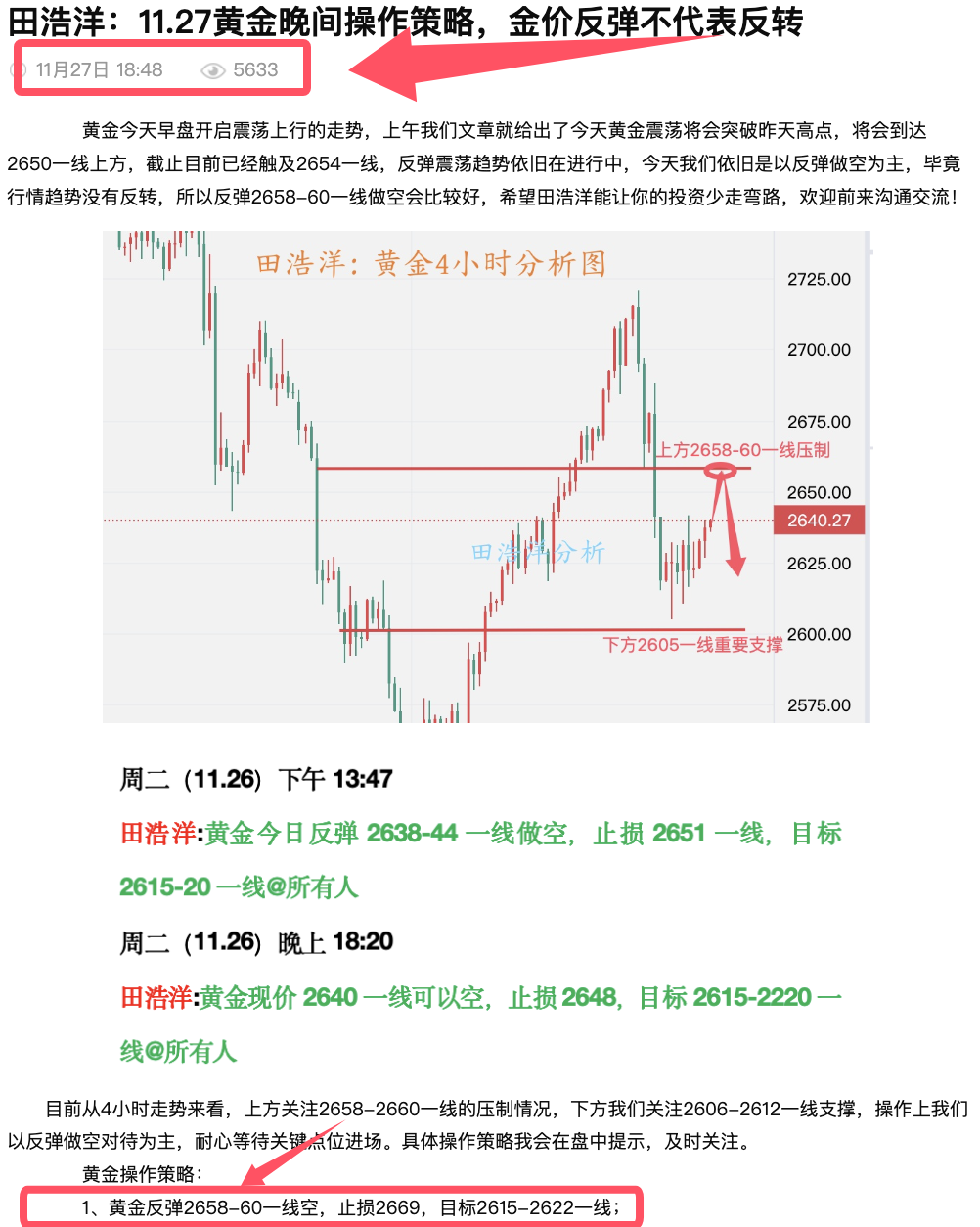 田浩洋:5.26黄金晚间操作策略,回踩触底继续反弹