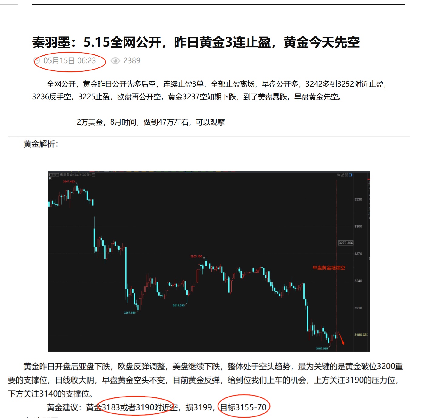 秦羽墨:5.16昨日黄金3190.3148空大跌至3132止盈,今天黄金反弹先空