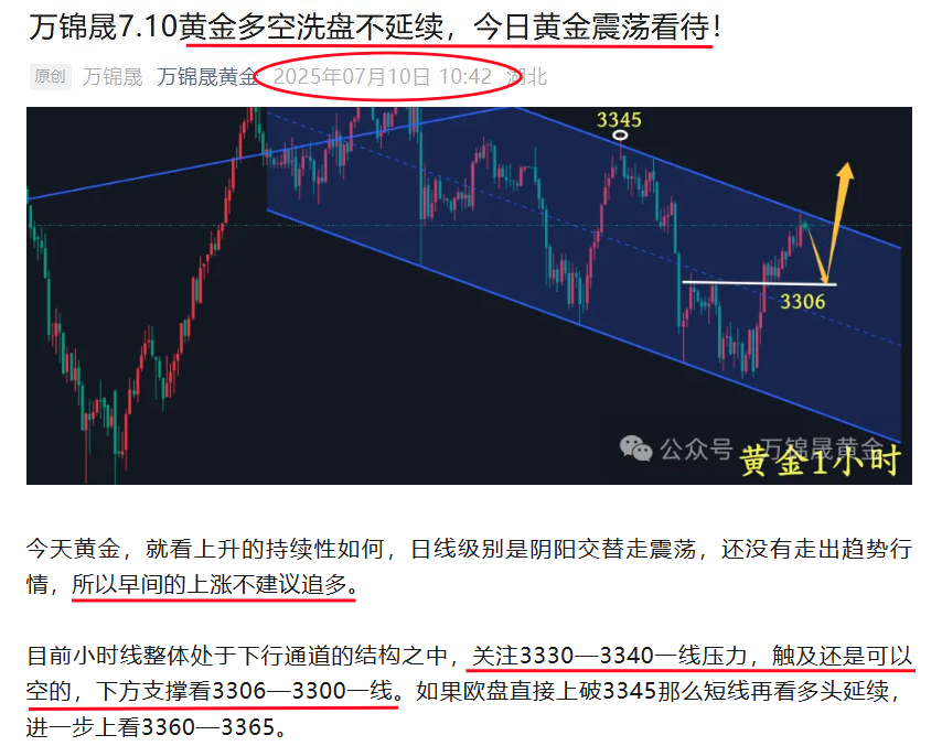 南一交易:7/11黄金趋势3350如期兑现!今日谨慎做空!