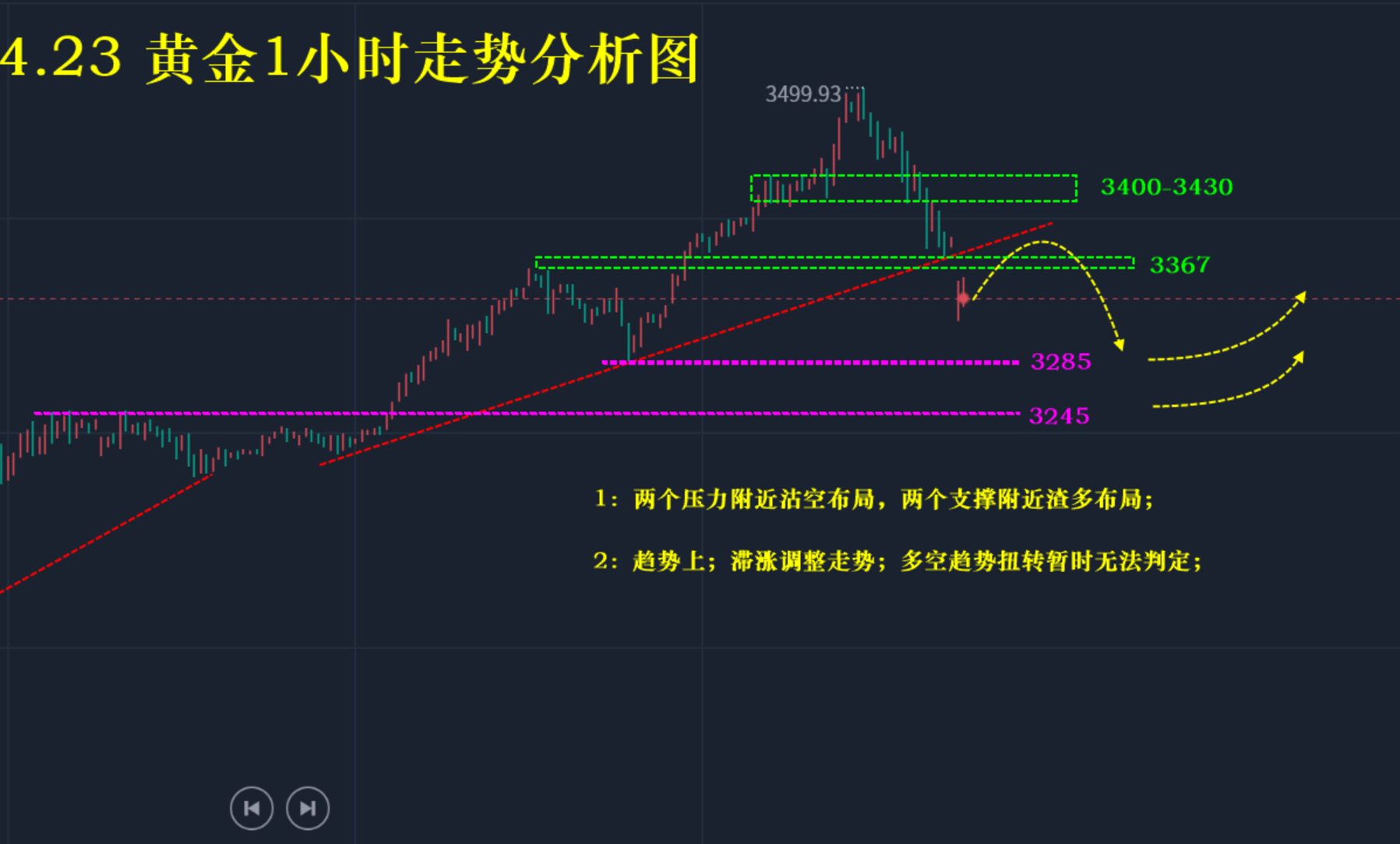 多空指标供实盘:“下周继续震荡”黄金开盘顶底转换3350空