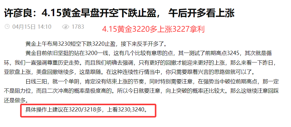 许彦良:4.16黄金再创新高如何操作,日内行情走势分析操作策略解析