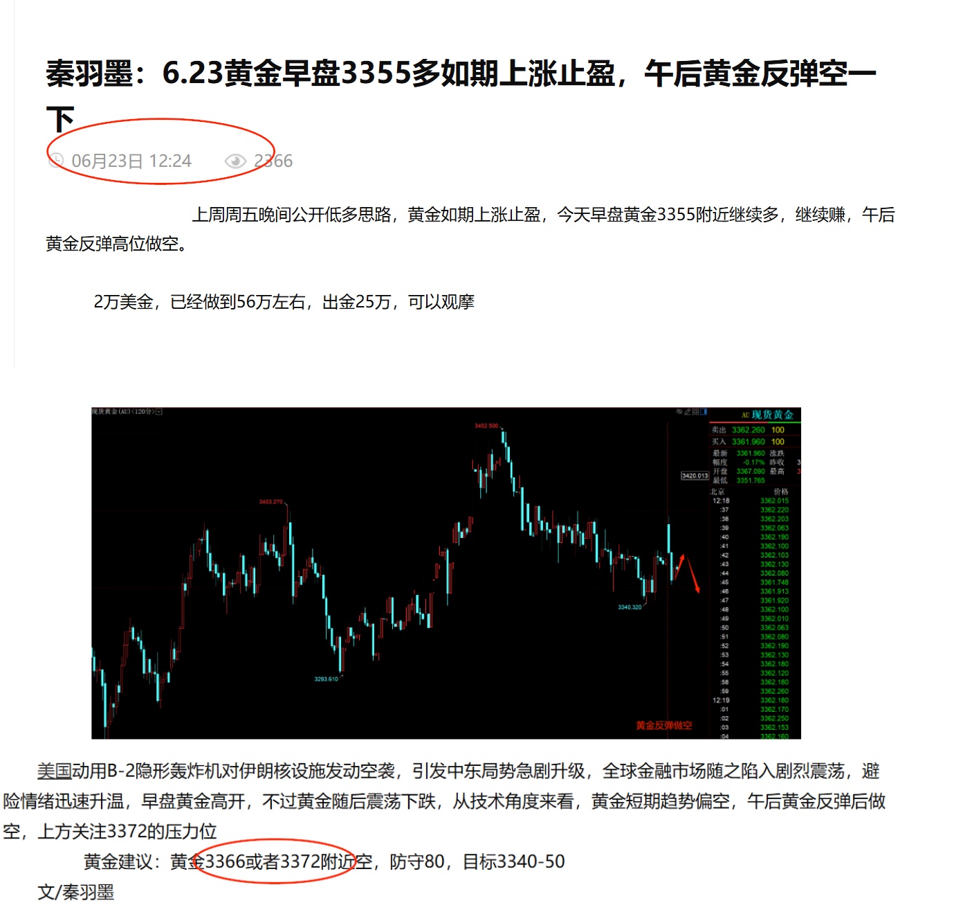 秦羽墨:6.24黄金反弹空如期下跌,午后继续高空